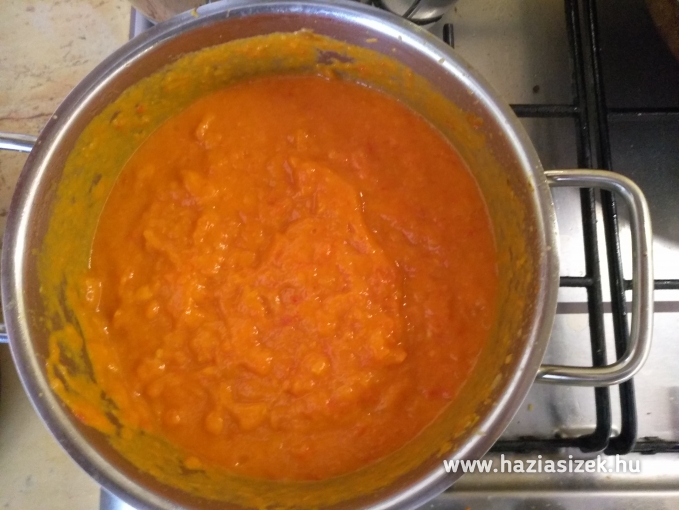 Előző este a csirkemellet szeletekre vágjuk, csemege paprikakrémmel, gulyáskrémmel jól bekenjük a csirkemell szeleteket. Éjszakára lefóliázva hűtőszekrénybe tesszük.