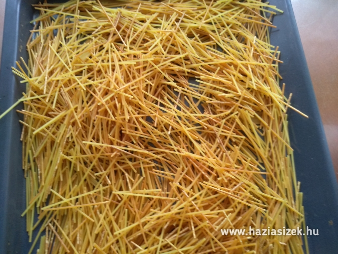 A gáz sütőben kicsit megpirítjuk a spagettit mielőtt kifőznénk.