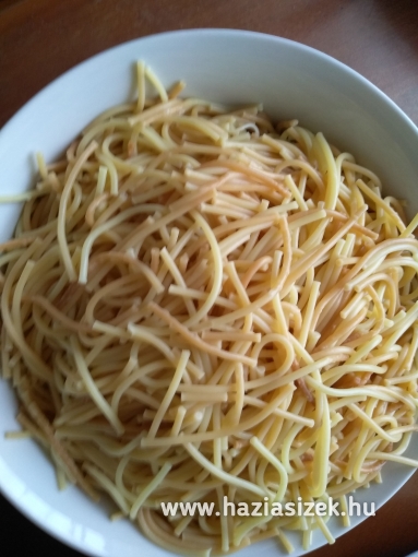 Ha szépen megpirult a tésztánk bő forrásban lévő vízben kifőzzük. Kicsit tovább kell főzni, mert a pirítás miatt keményebb tésztát kapunk.