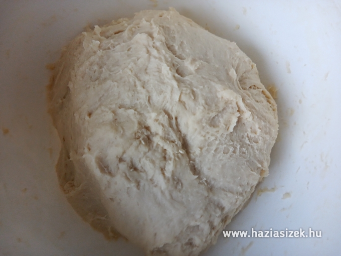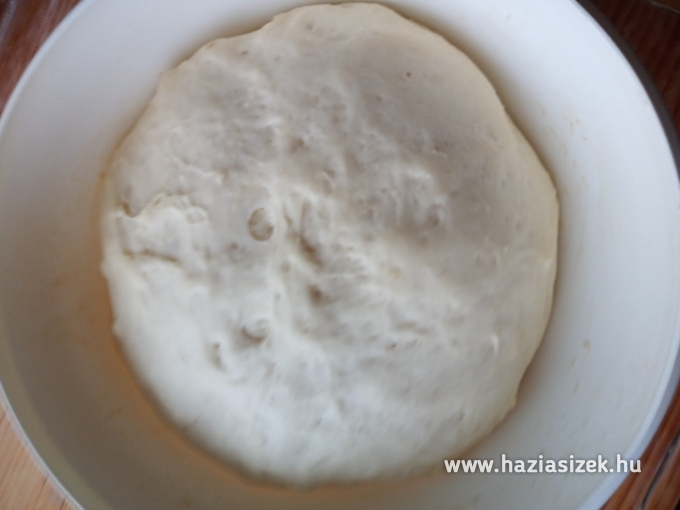 A megfont kalácstésztát sütőpapírral bélelt tepsibe tesszük, kb: fél óráig ismét letakarva meleg helyen kelesztjük.